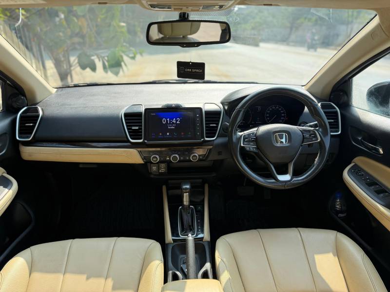 5th-gen Honda City ZX CVT top-end petrol automatic. LED headlamps, touchscreen with Android Auto/Apple CarPlay, cruise control, leather seats, reverse camera, and 6 airbags. Powerful yet smooth 1.5L i-VTEC engine with paddle shifters. Great mileage & low maintenance.