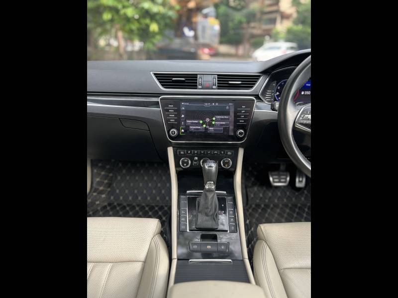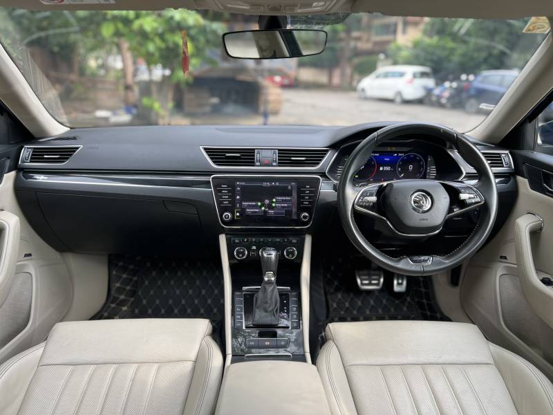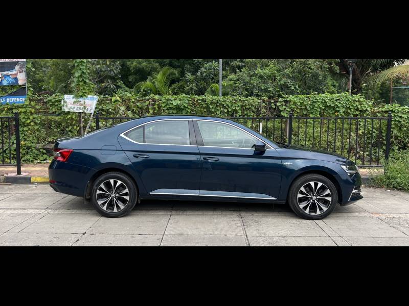 Premium full-size luxury sedan with a powerful 2.0 TSI turbo-petrol (190 PS, 320 Nm) mated to a 7-speed DSG. Finished in the stunning Lava Blue metallic, which shifts shades under light for a dynamic look. Features include virtual cockpit, ventilated leather seats, 3-zone climate control, panoramic sunroof, 360 camera, and 8 airbags. Spacious 625 L boot, refined ride, and top-end Laurin & Klement luxury trim.