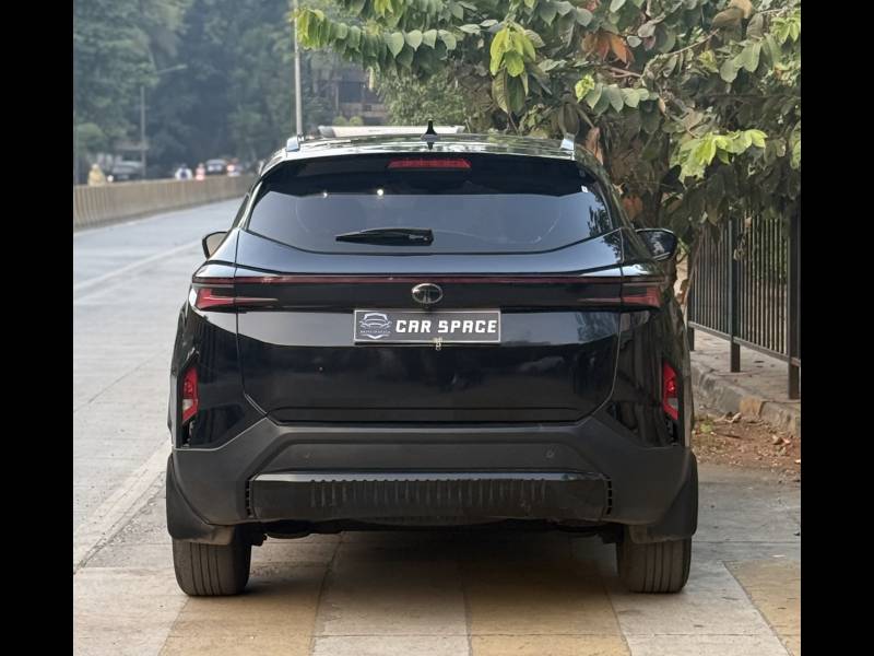 The 2024 Tata Harrier Pure+ S Dark Edition AT is a premium mid-size SUV with a bold all-black theme, 2.0L Kryotec diesel engine (168 bhp/350 Nm), and a smooth 6-speed automatic with paddle shifters. It offers a roomy cabin with blackstone interiors, 445L boot space, panoramic sunroof, JBL audio, and advanced safety including 7 airbags, ESC, hill-hold, and a 5-star Global NCAP rating